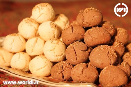 سپس به اندازه یک فندق از خمیر شیرینی را بردارید و با کمک دست خمیر شیرینی را گرد کنید و بقیه خمیر را هم به صورتی که گفته شده درست کنید و خمیر های آماده شیرینی را درون سینی فر با فاصله مناسبی قرار دهید سپس سینی فر را به مدت ۱۵ دقیقه در طبقه وسط فر با دمای ۱۸۰ درجه سانتی گراد قرار دهید تا شیرینی ها پخته شوند.