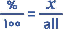 یا اگر بخواهیم % را به دست آوریم، کافی است که ۱۰۰ و x را در هم ضرب کرده و بر all تقسیم کنیم.