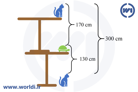 ارتفاع از سر گربه بالایی تا بالای سر گربه ی پایینی 300 است. این دقیقاً دو برابر ارتفاع یک میز است، همانطور که با حذف عناصر نامربوط در عکس، و جابجایی قد گربه به پایین قابل مشاهده است: