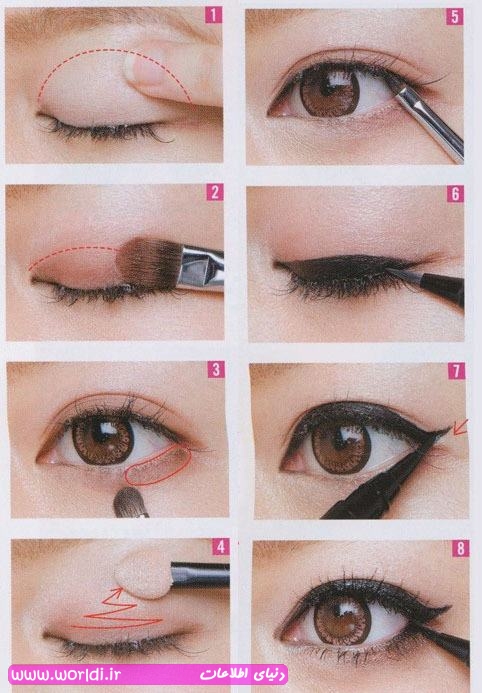 ۵- اگر دوست داشتید می توانید زیر چشم را هم خط باریکی بکشید درصورت درشت بودن چشم با مداد داخل چشم بکشید.