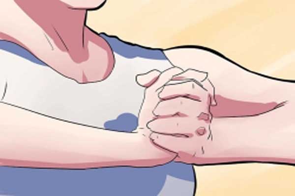هر دو دست را مشت کرده و مقابل هم مشتها را به سمت هم فشار بدهید.