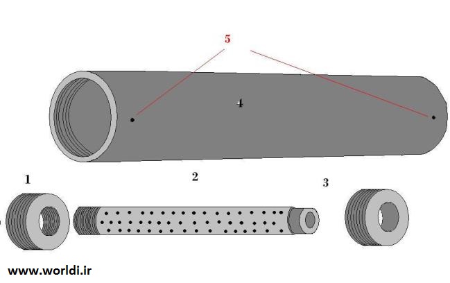 قطعه شماره ۱ از یک طرف به لوله شماره ۲ پیچ می شود و از طرف دیگر به سر لوله تفنگ.