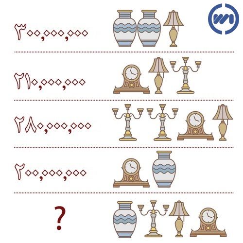 دنیای اطلاعات: در یک عتیقه فروشی، چند شیء عتیقه گرانقیمت وجود دارد. ترکیب برخی از حالت های ممکن این اشیاء و قیمت مربوطه، مشخص شده است. آیا می توانید در سریعترین زمان ممکن بگویید ارزش حالت آخر، چقدر است؟
